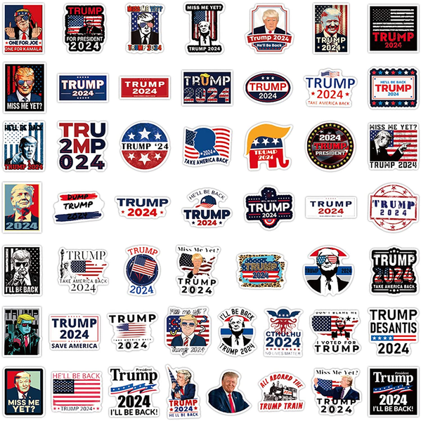 Pack Of Trump 2024 Stickers – Trump supporters have taken his infamous 2005 comments and turned them into a campaign slogan in the 2024 presidential election. . all while leading the pack for the Republican nomination for president.However, 2024 is shaping up to be even more chaotic for Trump.In total, Trump faces 91 felony charges, across both state and .